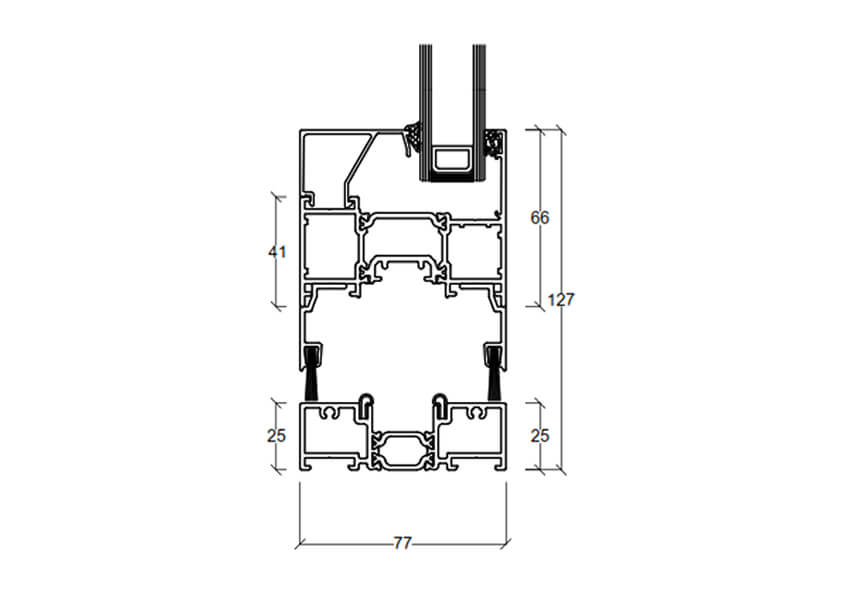 yüksek performanslı olanlardan alçak ve hatta düz eşiklere kadar 4 farklı eşik çözümü sunar. - CF 77 konsepti ayrıca pencereler, kapılar ve giydirme cepheler için CS sistemleri ilekusursuz şekilde kombine edilebilir.
