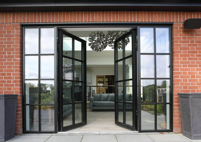 - Çeşitli tasarım varyantlarında çelik görünümlü pencereler